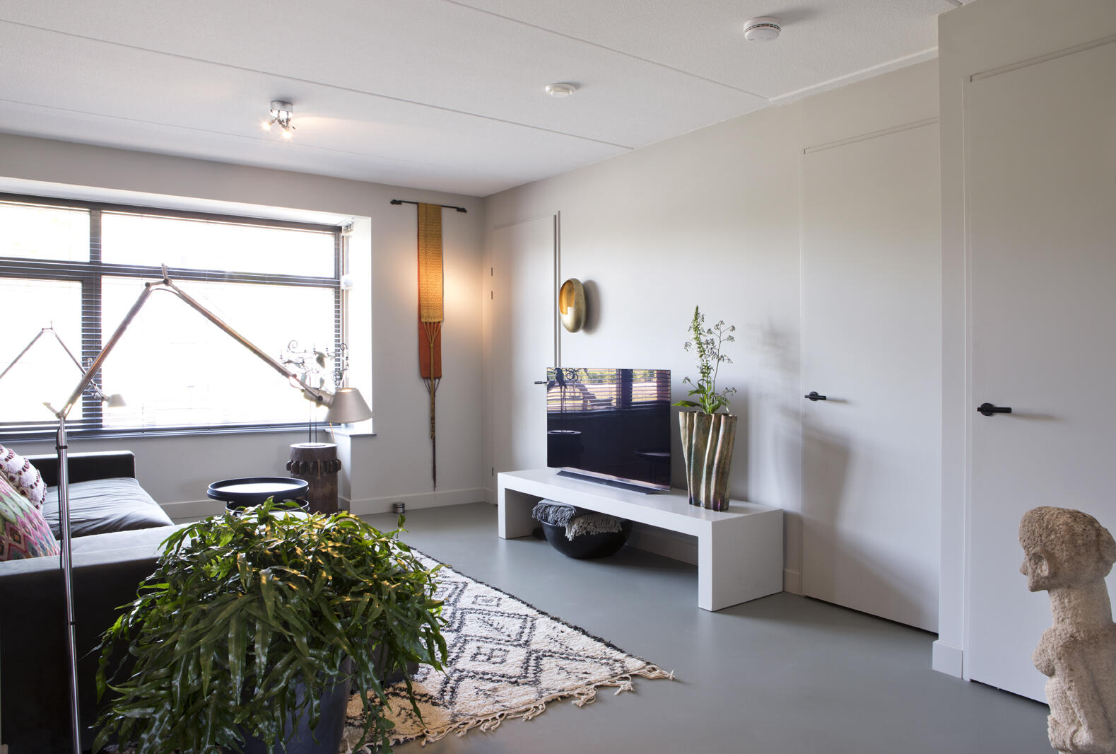 Op de eerste etage kozen Rob en Cocky voor een vergrote badkamer, waardoor de tweede slaapkamer iets kleiner werd. Aan de achterzijde zijn twee slaapkamers samengevoegd tot één grote. De zolder is een atelierruimte waar Cocky druk is met keramiek en schilderen.