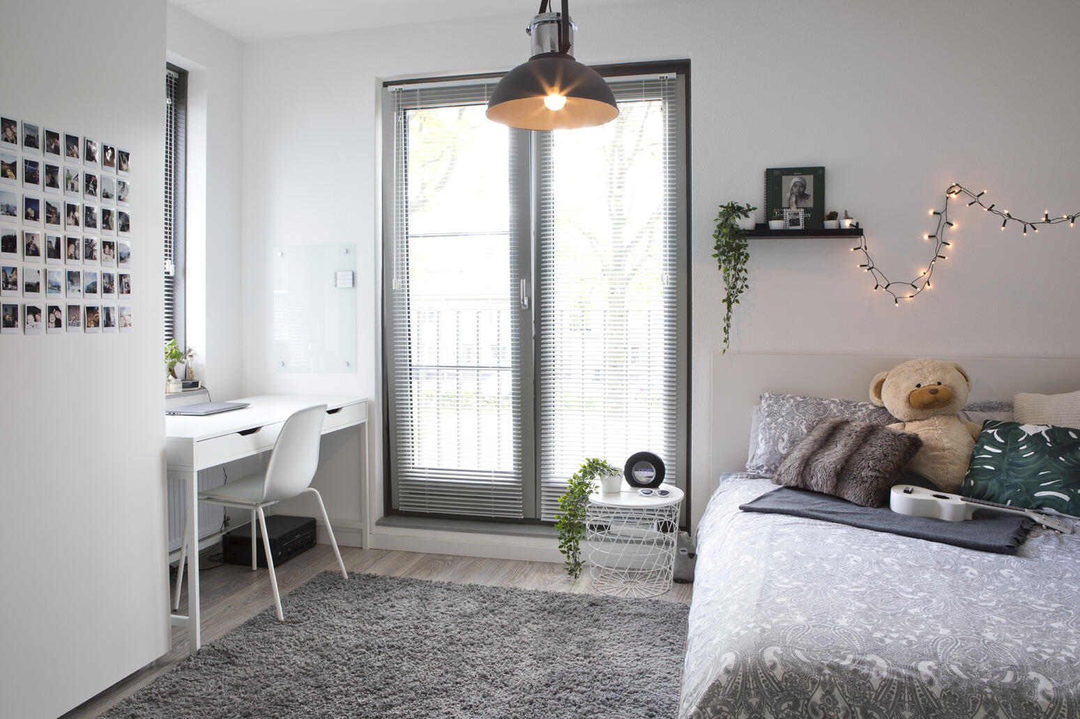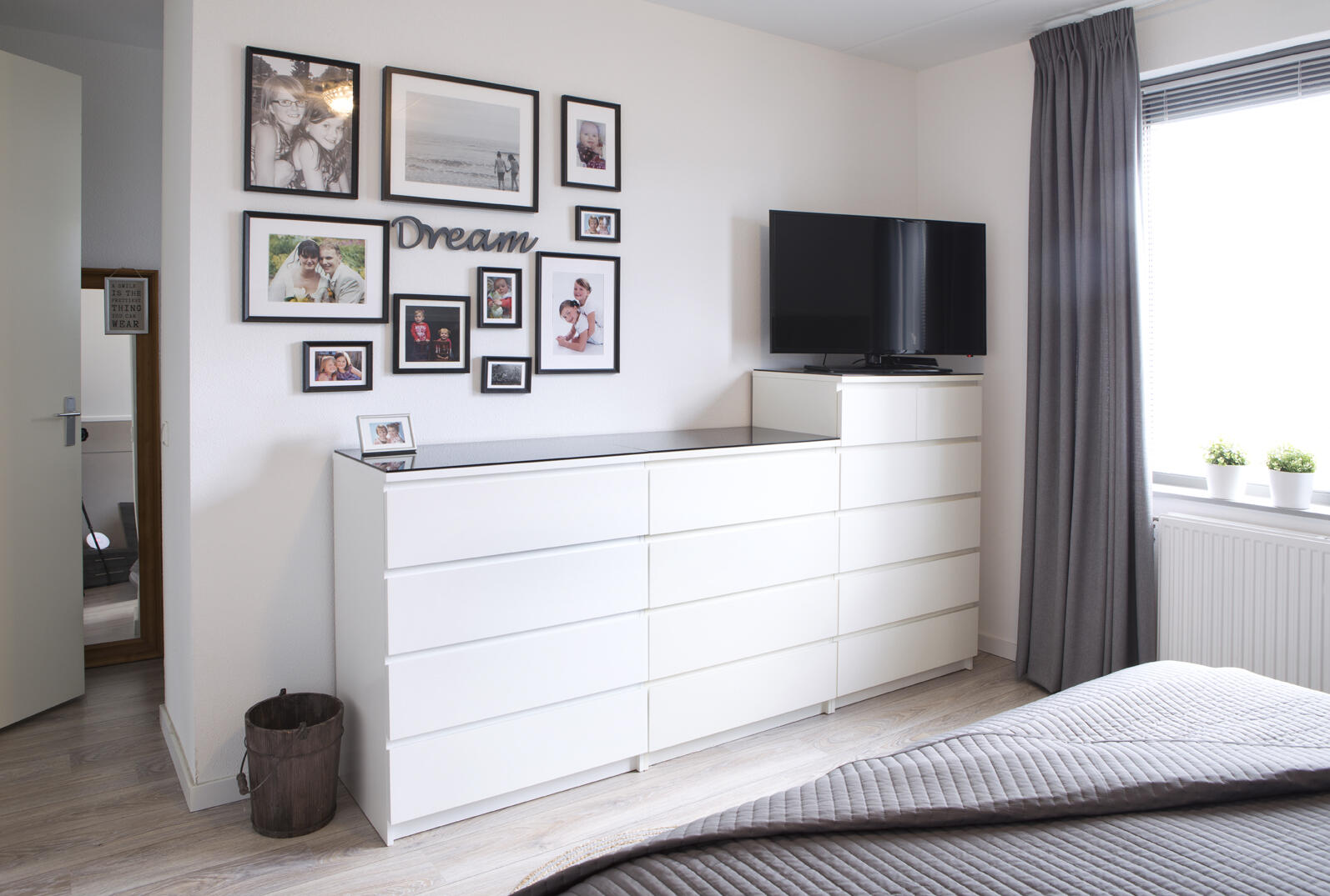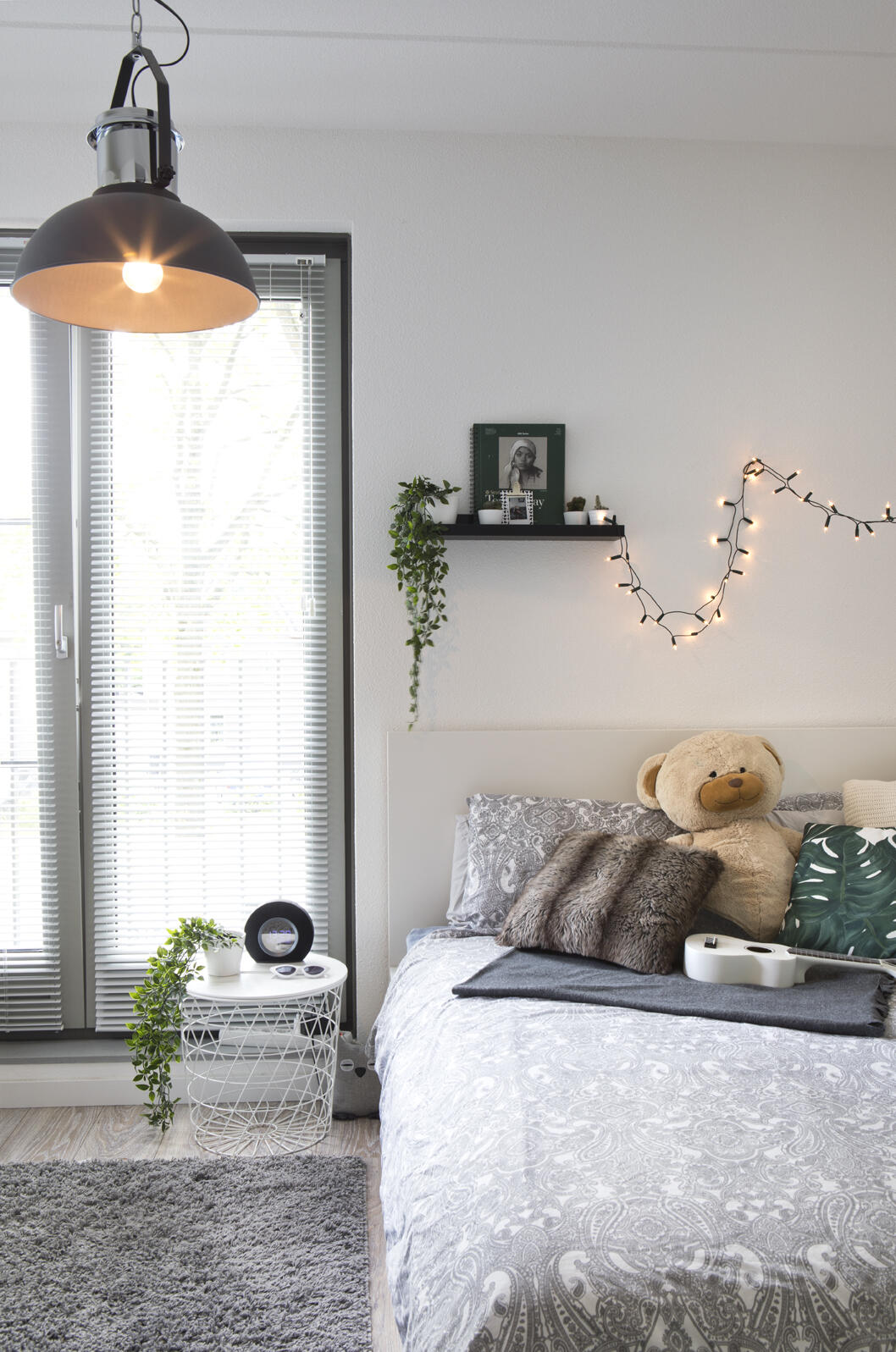Voor de slaapkamers heeft de familie gekozen voor rustige, neutrale kleuren met houtlaminaat op de vloeren. Op de zolderslaapkamer biedt de dakkapel plaats aan een zitbankje. En dankzij de hoogslaper kan hier ook gewerkt worden. De badkamer - met inloopdouche, dubbele wastafel en toilet - is eveneens uitgevoerd in een overwegend lichte kleur, met donkergrijze vloertegels. “We hebben eigenlijk zo’n beetje alles bij Whoon in het Warenhuys gekocht. Dat is toch makkelijk, je hebt alles in één, je hebt één aanspreekpunt en ze kunnen alles goed laten zien in die fraaie showroom. We zijn super tevreden.