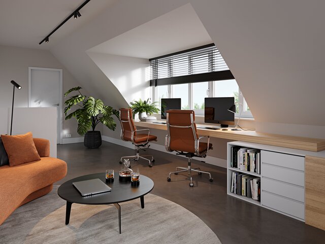 Op de zolder zijn de technische apparatuur (omvormer en warmtepomp) en de aansluitingen voor wasmachine en droger) netjes weggewerkt in een aparte ruimte. Daardoor kan de zolder ook zonder dat er een vierde slaapkamer is gemaakt toch dienen als logeerruimte. “In de toekomst gaan we hier misschien nog wel eens een dakkapel plaatsen, maar voorlopig hebben we ruimte genoeg.”
