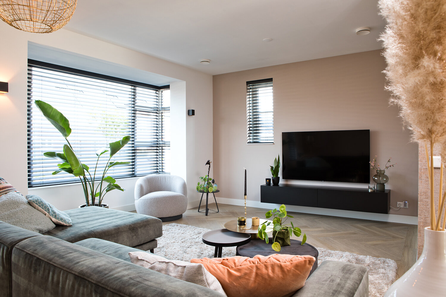Rustig en ruimtelijk met enkele opvallende, kleurrijke elementen. Dat is de formule die Rosie en Angelo in hun hoofd hadden voor de benedenverdieping van hun gloednieuwe tweekapper in Heesch. En ze zijn er goed in geslaagd die gedachte vorm te geven. Allereerst door het creëren van meer ruimte: een erker aan de voorzijde en een uitbouw van 2,4 meter aan de achterzijde. “We zijn blij dat we deze opties konden kiezen. Daardoor hebben we heerlijk veel ruimte en de erker biedt ook extra lichtinval”, zegt Rosie.