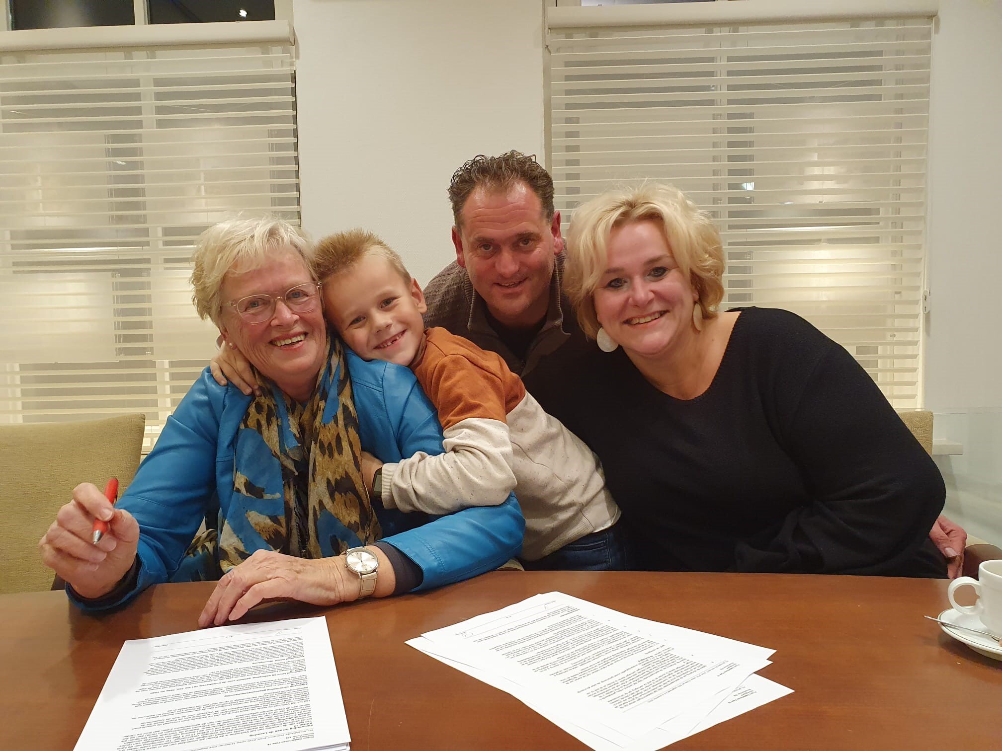 Mevr. van der Veer tekende onlangs de koopovereenkomst voor een van de hoekwoningen met garage in fase 18. Een feestelijk moment waar haar dochter, schoonzoon en kleinzoon graag getuige van zijn. (O)ma komt namelijk heel dichtbij wonen! Mevr. van der Veer verhuist van een grote woning in het buitengebied van Ede naar dezelfde wijk als haar dochter en haar gezin. "Ze hebben het hier goed naar hun zin, het is een fijne woonwijk en het dorp Kesteren heeft veel te bieden."